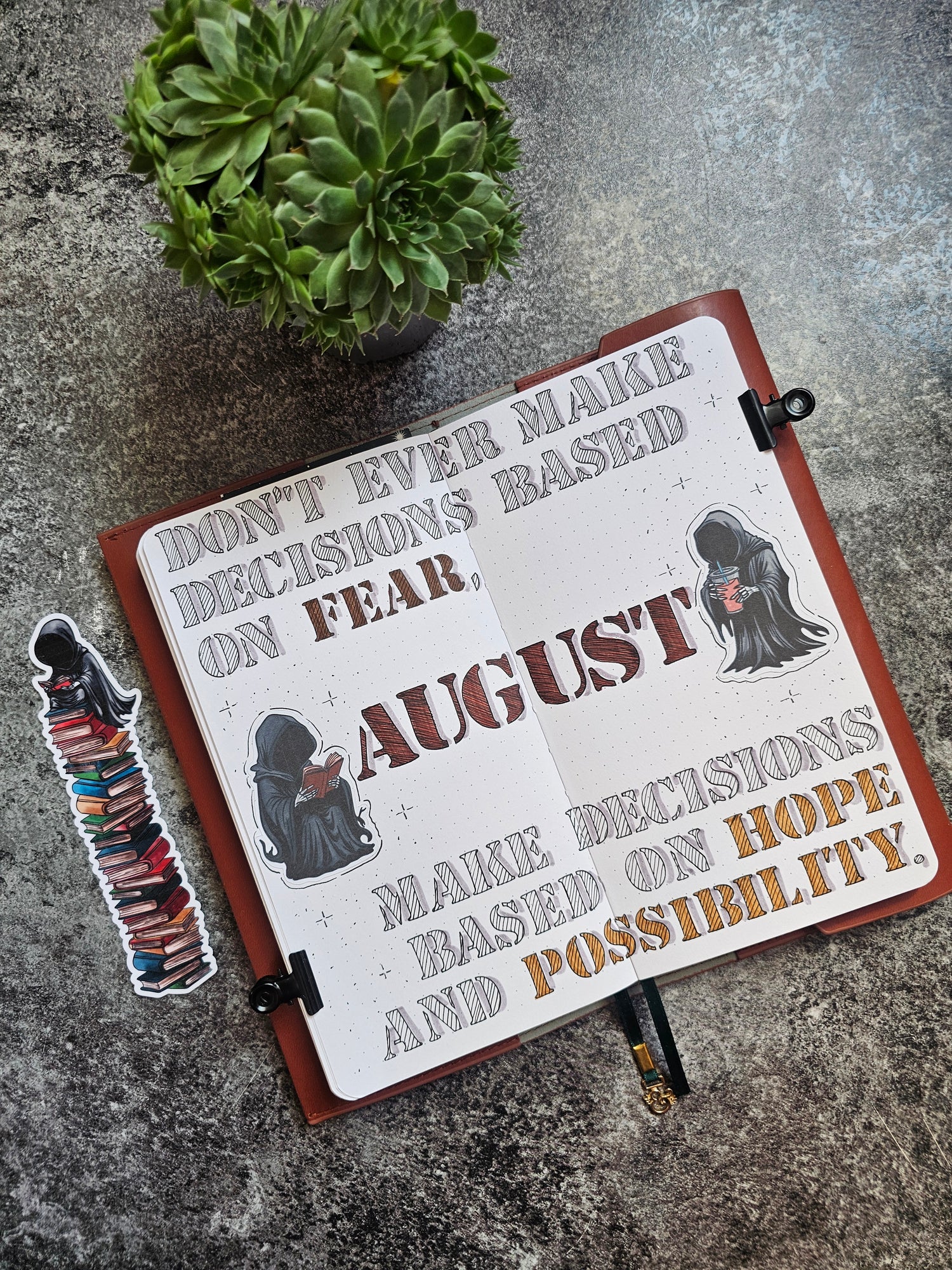 Heute wollte ich euch noch mein knappes August Setup im Journal zeigen. "Rick the Reaper" begleitet mich durch den Monat. Wir teilen die Koffeinsucht und Bücherliebe ㋛︎ Ich war gleich schockverliebt in die wundervollen Sticker! Und wie cool ist bitte das Lesezeichen???