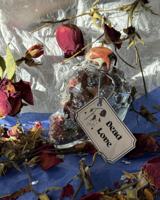 • 🏷️ Handgemachtes Tag mit der Aufschrift „Dead Love“