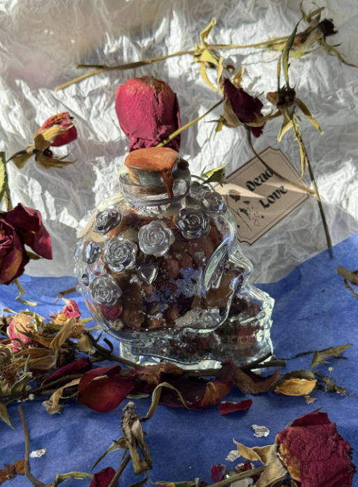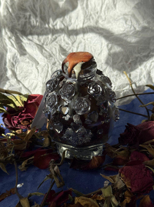 Zerbrochene Rosen, glitzernde Fragmente, silberne Ornamente und dunkle Eleganz verschmelzen hier zu einem düsteren Kunstwerk, das zwischen Gothic Romance, Hexenaltar und Dark Academia seinen Platz findet.